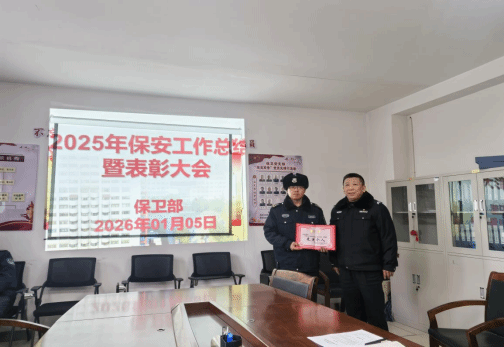 为进一步强化校园安全保卫工作,系统总结年度工作成效、周密部署假期防控任务,同时表彰先进典型、凝聚队伍合力,保卫部于2026年1月5日在党员活动室召开2025年度保安队工作总结暨表彰大会。保卫部副部长董旭亮、治安科科长史瑞及部门相关负责同志、部分保安队员参加会议。会议以“复盘下半年工作、部署重点任务”为核心,集中推进工作复盘、假期防控部署、先进典型表彰三项重点工作。
